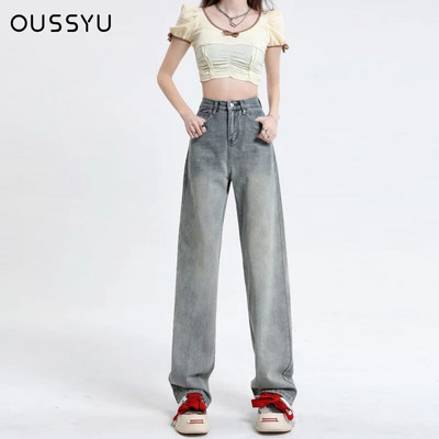Badu ei vastuta ostu eest OUSSYU Retro sinised teksad Naiste kõrge vöökoht, sirge lai jalg Femme vabaaja mitmekülgsed lahtised püksid tänavastiilis mood teksapüksid Alates Naiste teksad Väljaspool tellimisvormi.